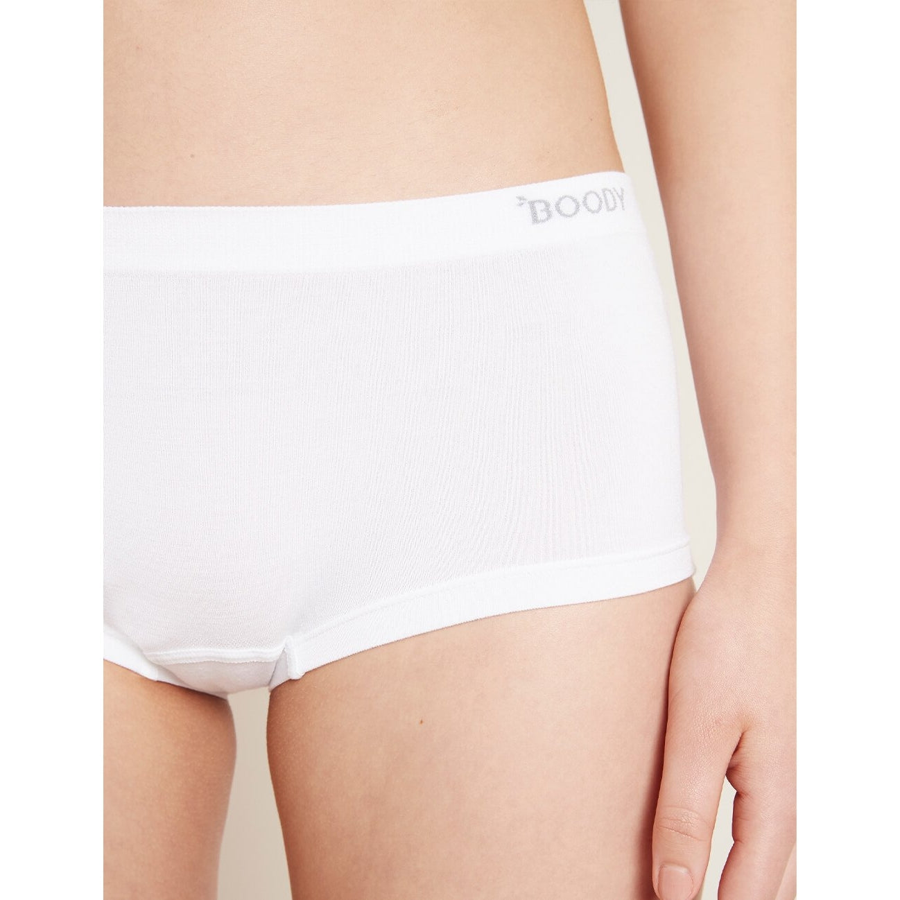 79% viscose made from organically-grown bamboo, 15% nylon, 6% elastane\nA customer favourite, these fabulously comfy Boyleg briefs made from our premium bamboo fabric have a wide waistband, mid ride finish and gentle stretch. These versatile briefs are ideal for active workouts, running errands to lounging around in comfort.